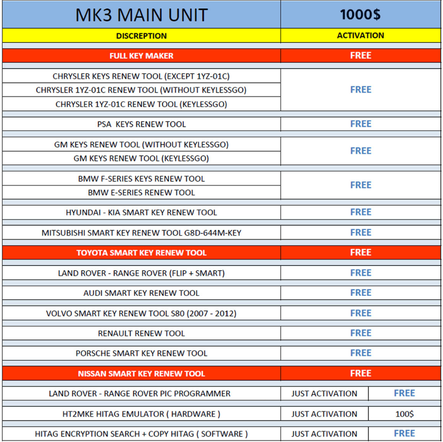 1. MKIII inculdes full keys unlock function, no need for tokens or annual Activations.